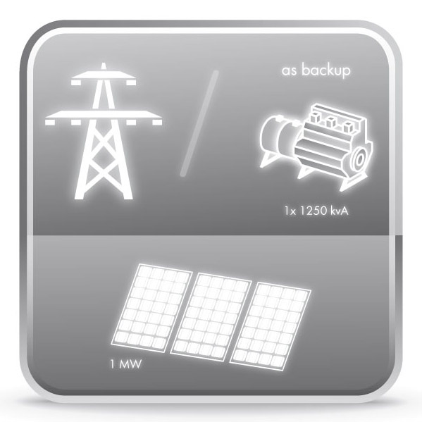 With SMA’s Fuel Save Solution for large industrial applications, PV can be easily and efficiently integrated into diesel grids. The Sunny Tripower and Sunny Central inverters convert the direct current from PV modules into alternating current and feed it into power supply systems. The SMA Fuel Save Controller manages PV feed-in and the diesel genset remains unaffected. The result: An achievement up to 60 percent of PV capacity compared to installed genset capacity.